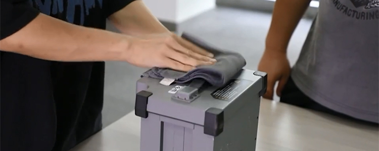 (2) Verifique que la batería no tenga signos de golpes. Si hay un golpe grave que resulte en deformación o golpes, es necesario verificar si la celda está dañada por compresión, como daños en la celda, fugas o abultamientos, es necesario reemplazar la batería de manera oportuna y tratar la batería vieja como desecho.